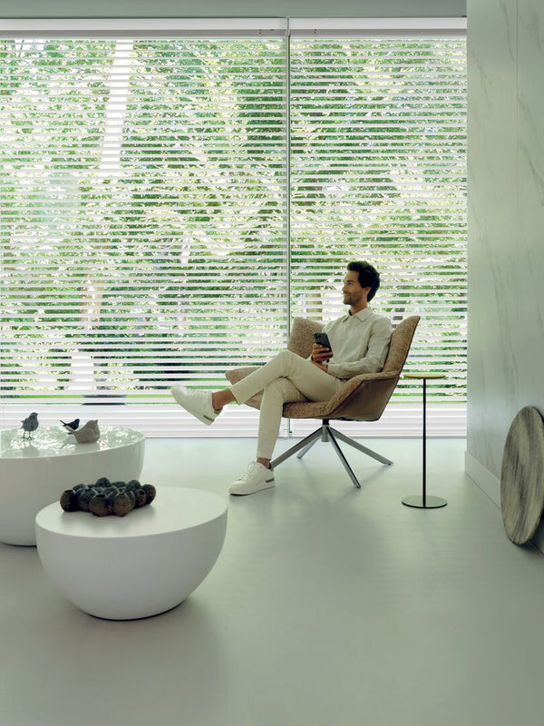 Altijd de juiste sfeer, privacy en mate van daglicht in huis. Jouw raamdecoratie beweegt automatisch mee op het ritme van jouw leven — van ochtendroutine tot nachtrust.