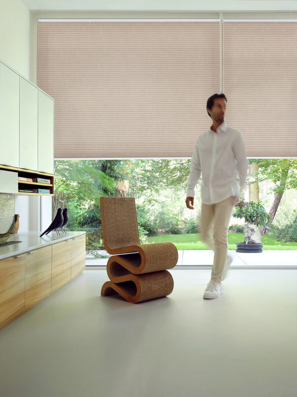 Houd de warmte buiten in de zomer en binnen in de winter. Slimme geprogrammeerde raamdecoratie helpt je automatisch energie te besparen, elke dag weer.